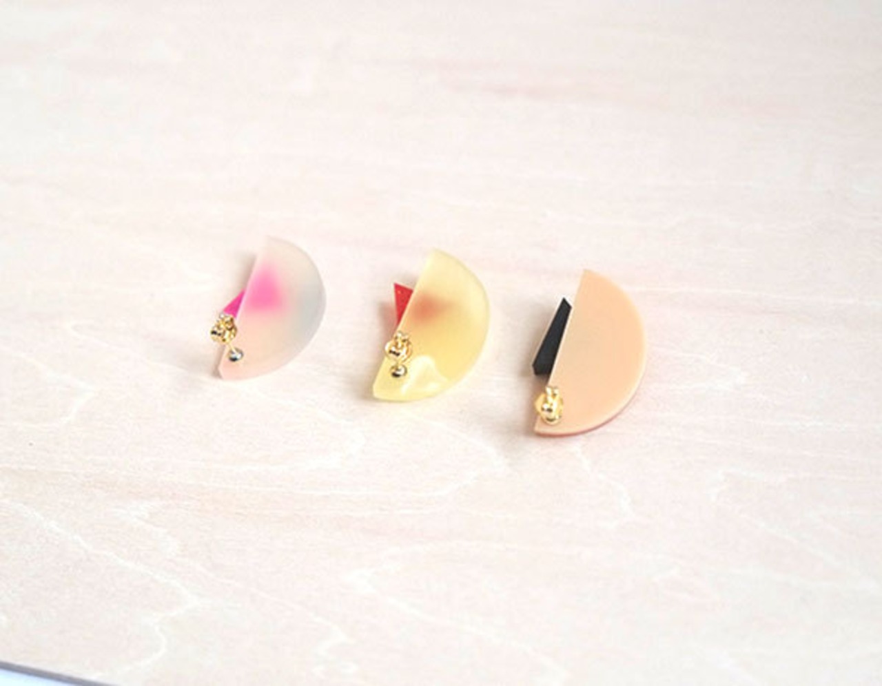 半円と三角のピアス (イエロー)