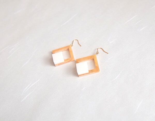 四角いピアス・イヤリング (茶)