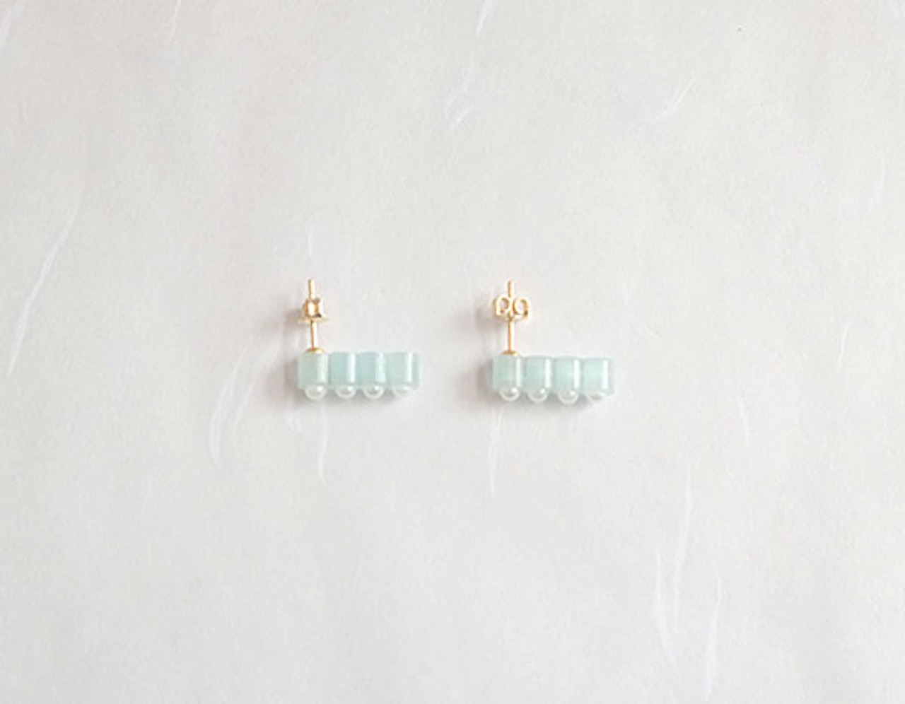 小さなパールのがついた、小ぶりなピアス。華奢で繊細なデザインです。